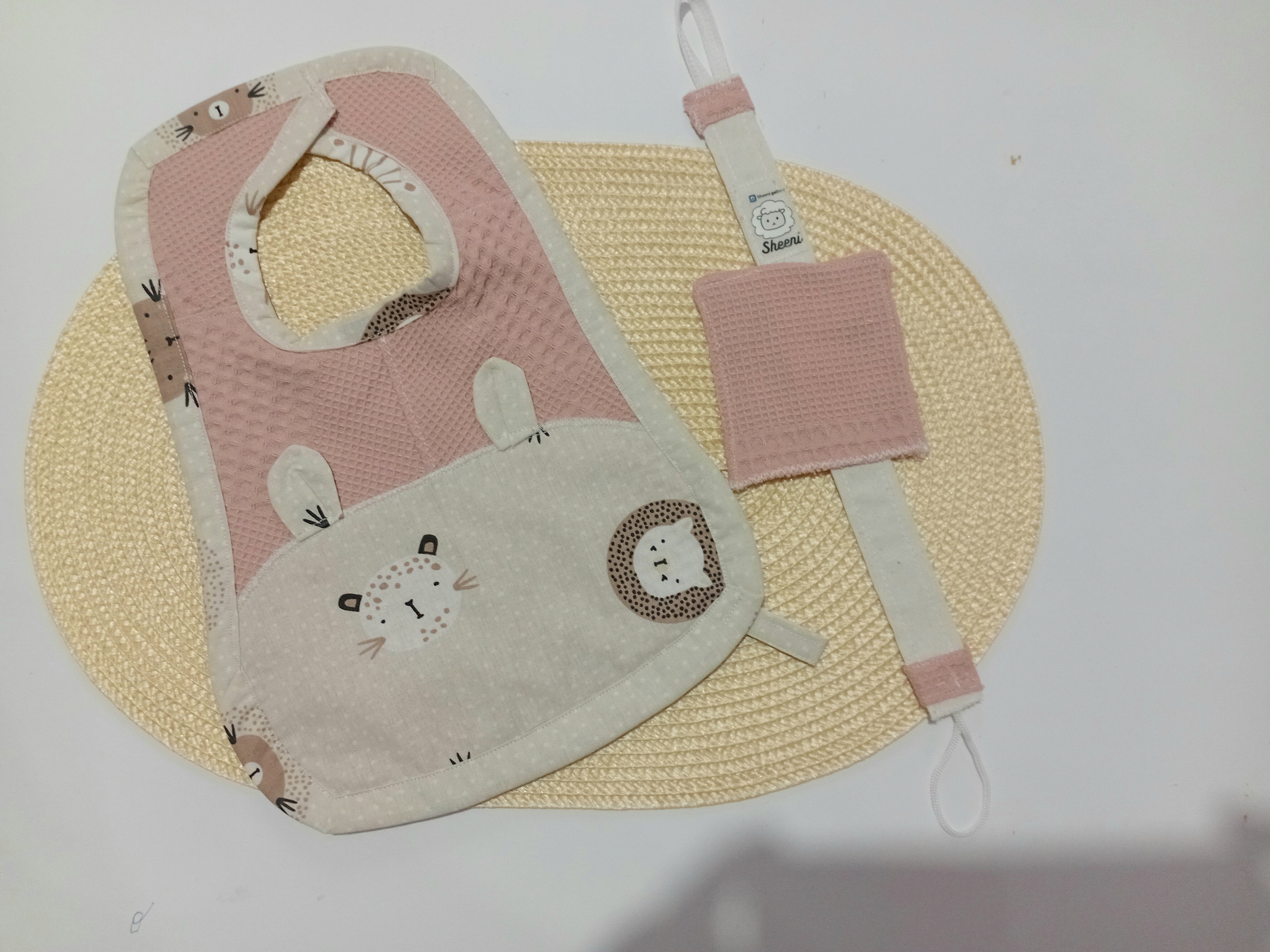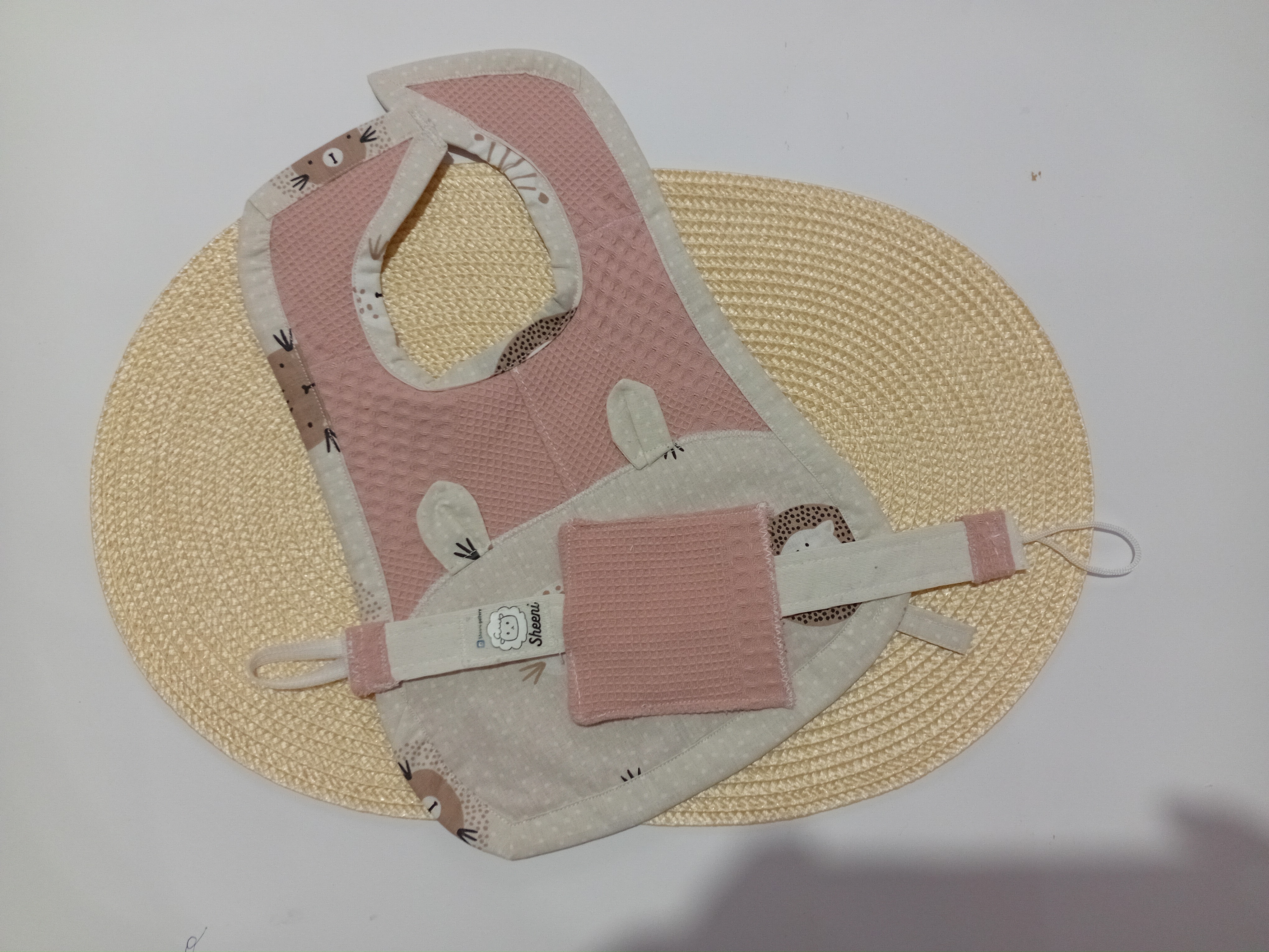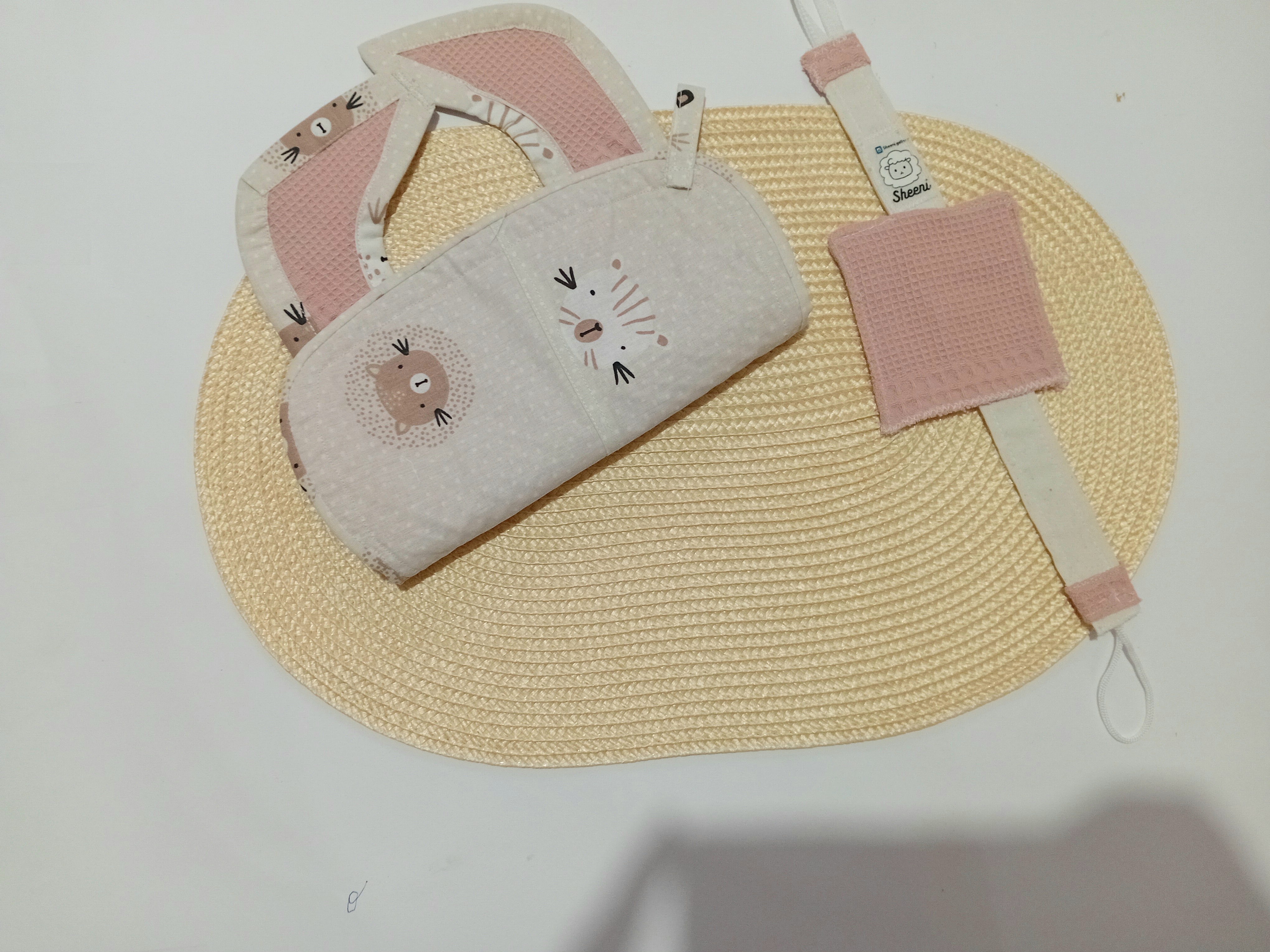 پیشبند صورتی به همراه بند پستونک کیفدار